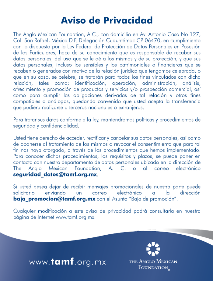 Para mayor información de este y otros cursos contáctanos en cursosenelextranjero@tamf.org.mx ó al 3067 8819